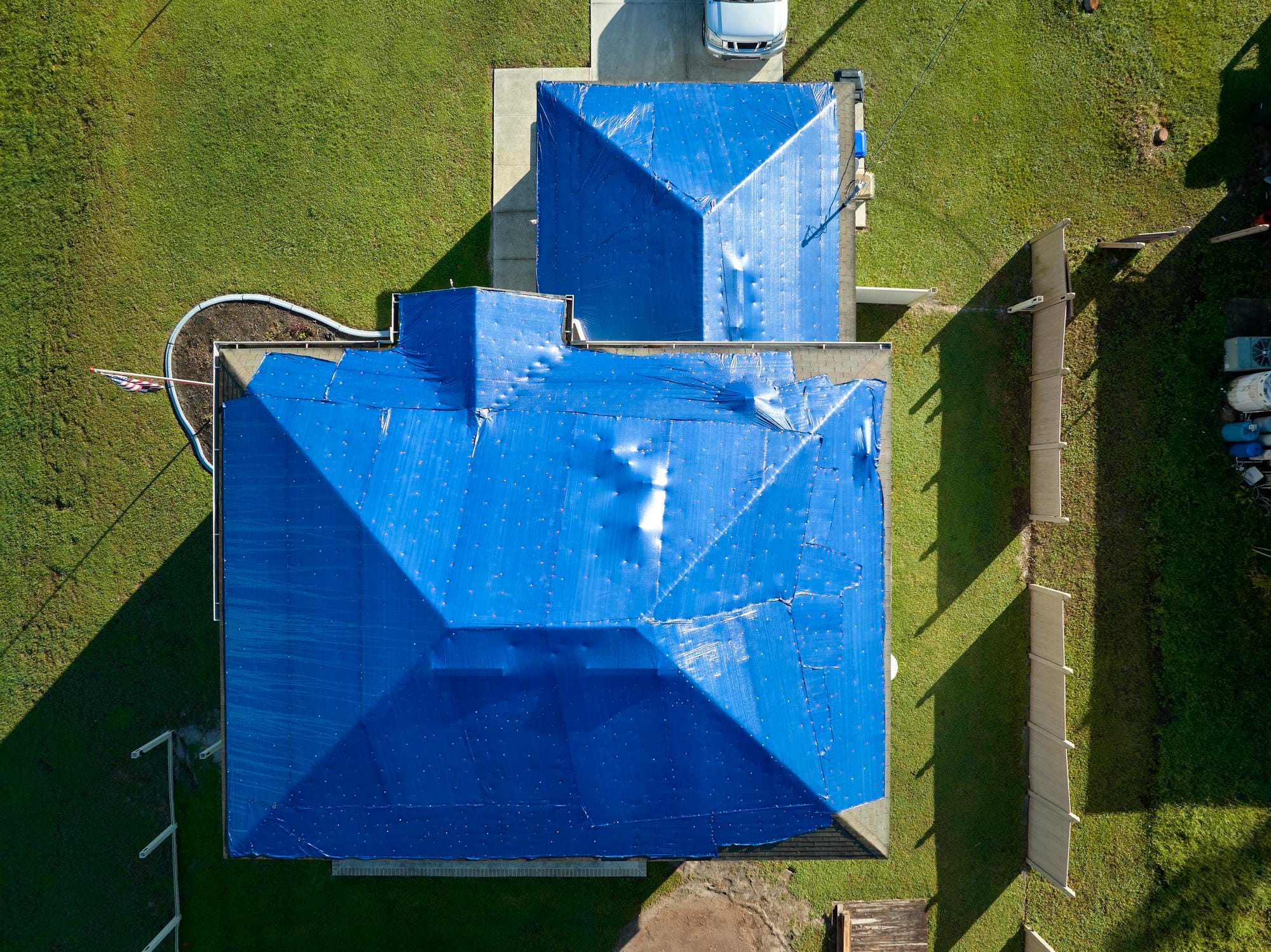 Nous installons des dispositifs de bâchage professionnels qui forment un rempart hermétique provisoire, bloquant toute infiltration en attendant les réparations définitives ou le passage de votre expert d’assurance.